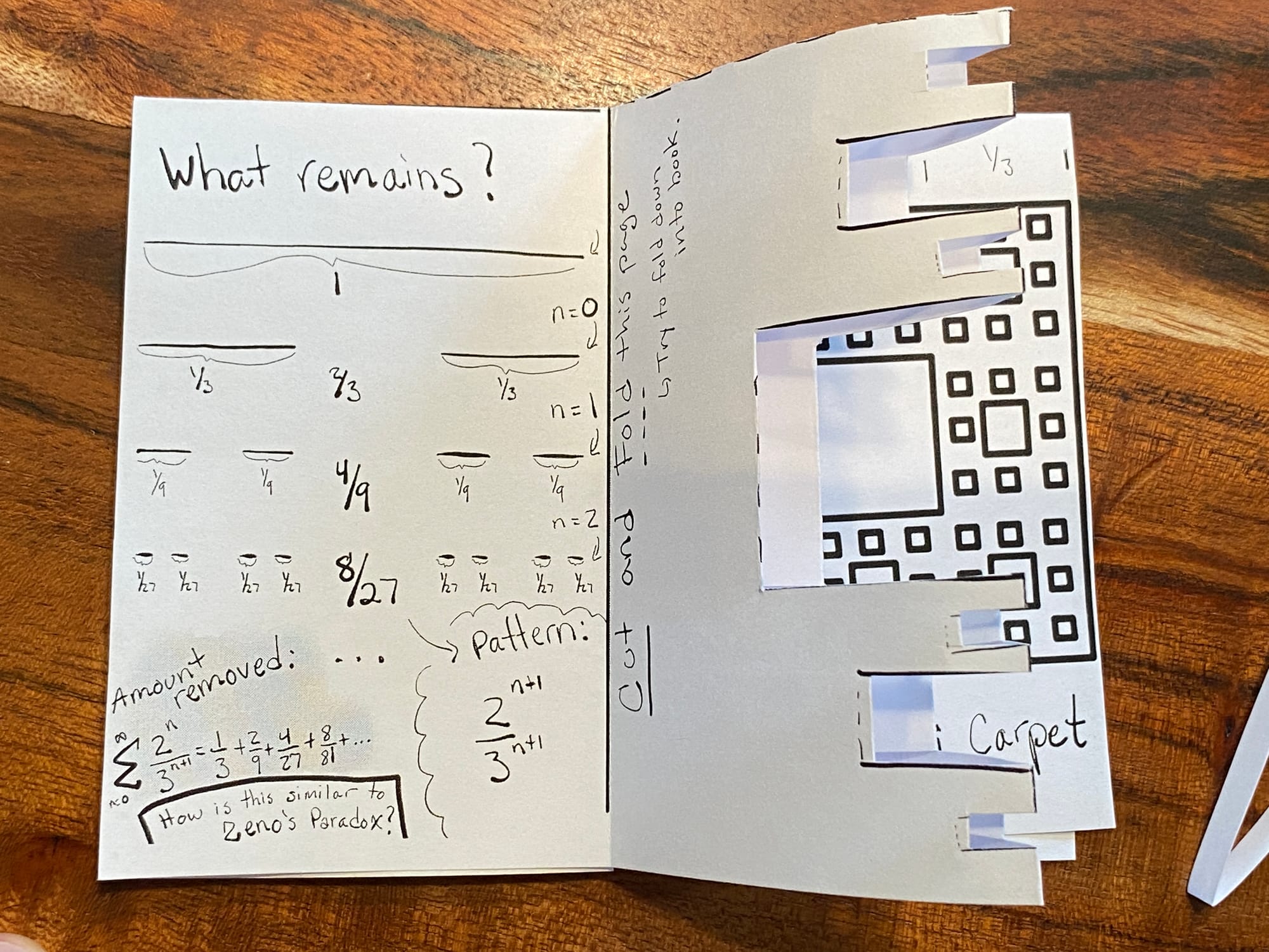 This is Fractal Kitty’s first zine! I was inspired by the public math website. Some wonderful zines from @becky_k_warren and @Ayliean are on there. After cutting the Cantor Set with Kirigami to investigate fraction operations, exponents, and patterns this week with my middle school groups I thought