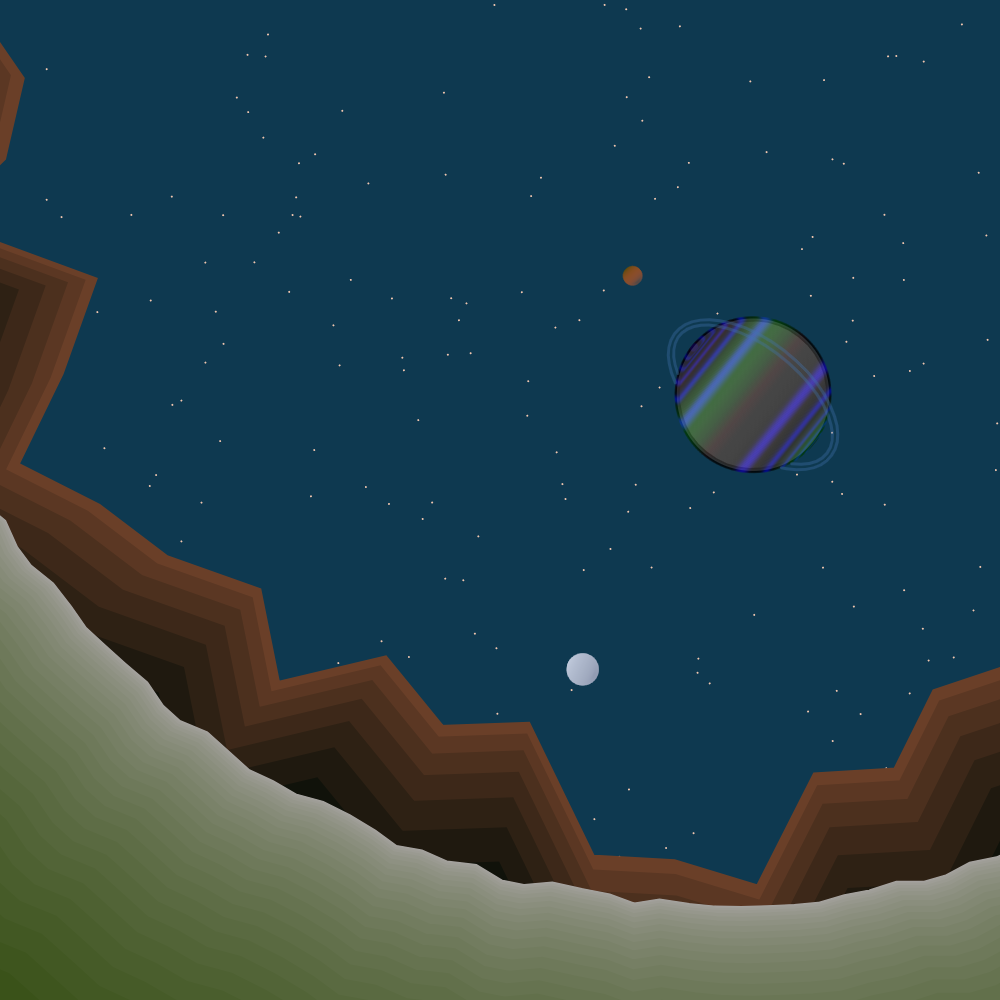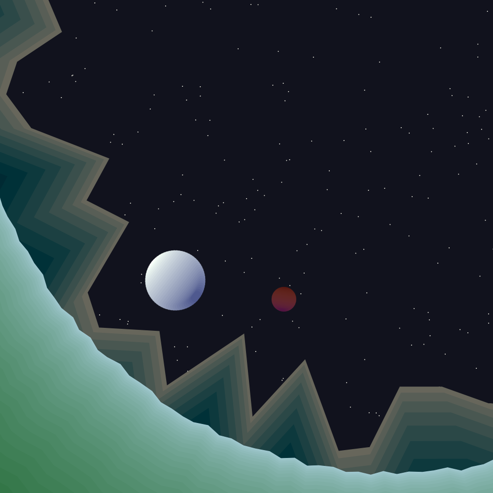This piece was created at the end of March as a stream of consciousness. I started with the Birb’s Nest coding group prompt of “space” and gradually pulled this together. This is featured in Codepen Spark Issue 279. Click here for the interactive piece. Click to pause, press space to change, and “s” to save.