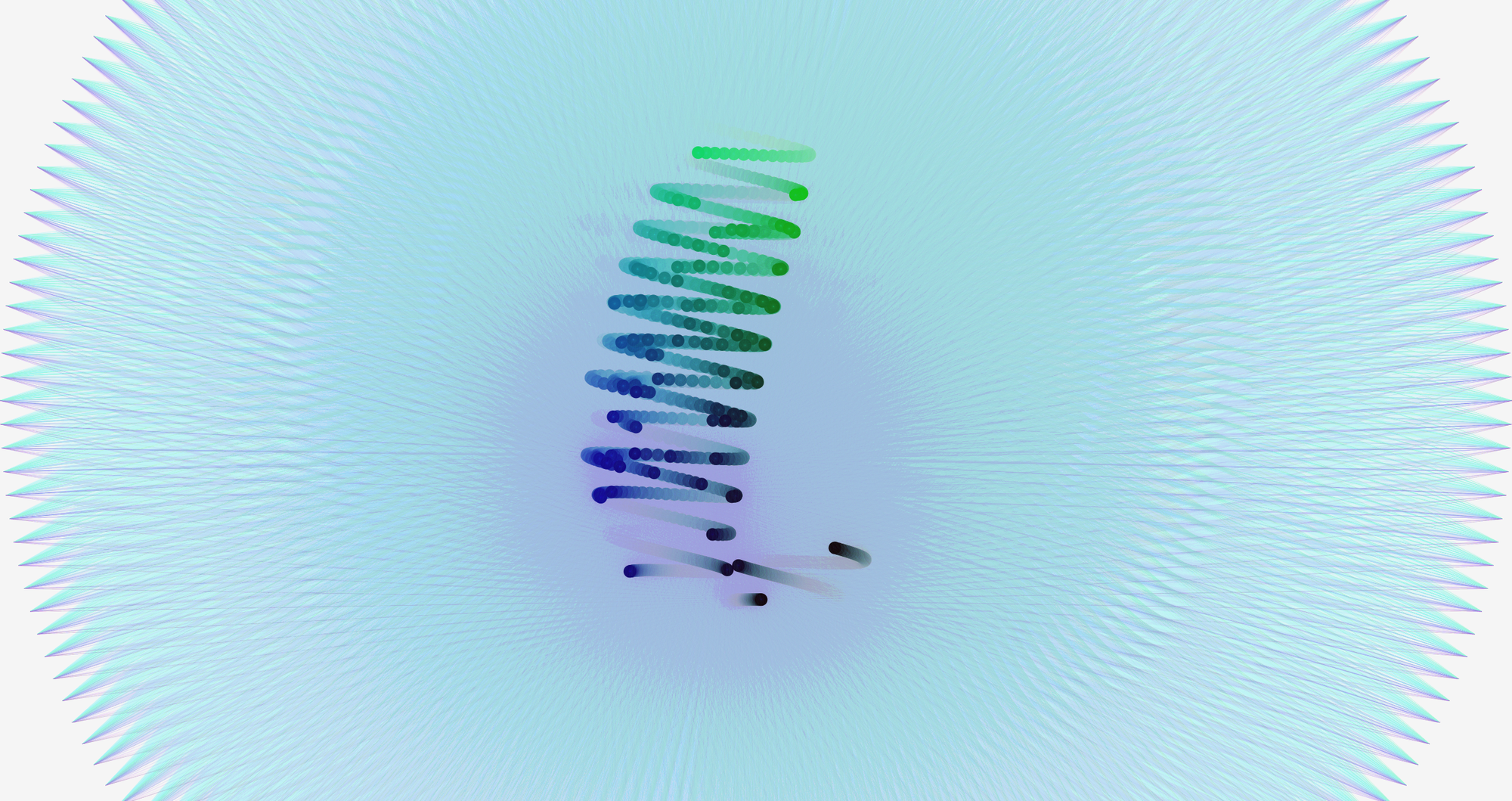 Another play with hatching was done with music. You need to click to start the music. The music is a piano doodle I did awhile ago. Press space to change color, press “c” to change more color, click to change the flocking cohesion. This won’t work on mobile well. Make sure your volume is on for the tab. Click here to open the interactive piece.