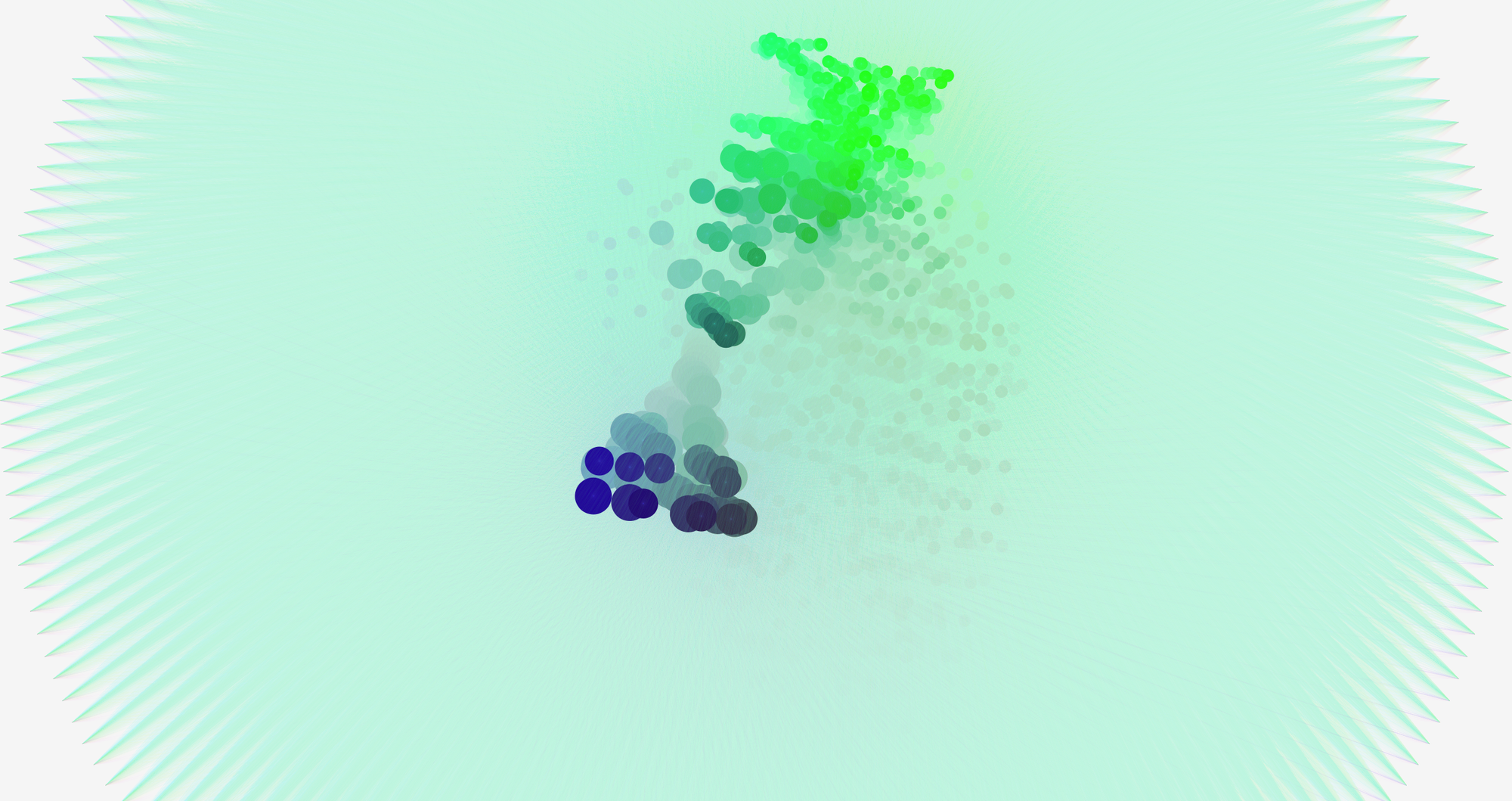 This piece was created in April to play with the prompt “hatching”. This code takes an image and samples the pixels to create smaller and smaller arcs. You can click and add more focal points. The painting is an acrylic piece I did a few years ago. This is featured in Codepen Spark Issue 281. Click here for the interactive piece.
