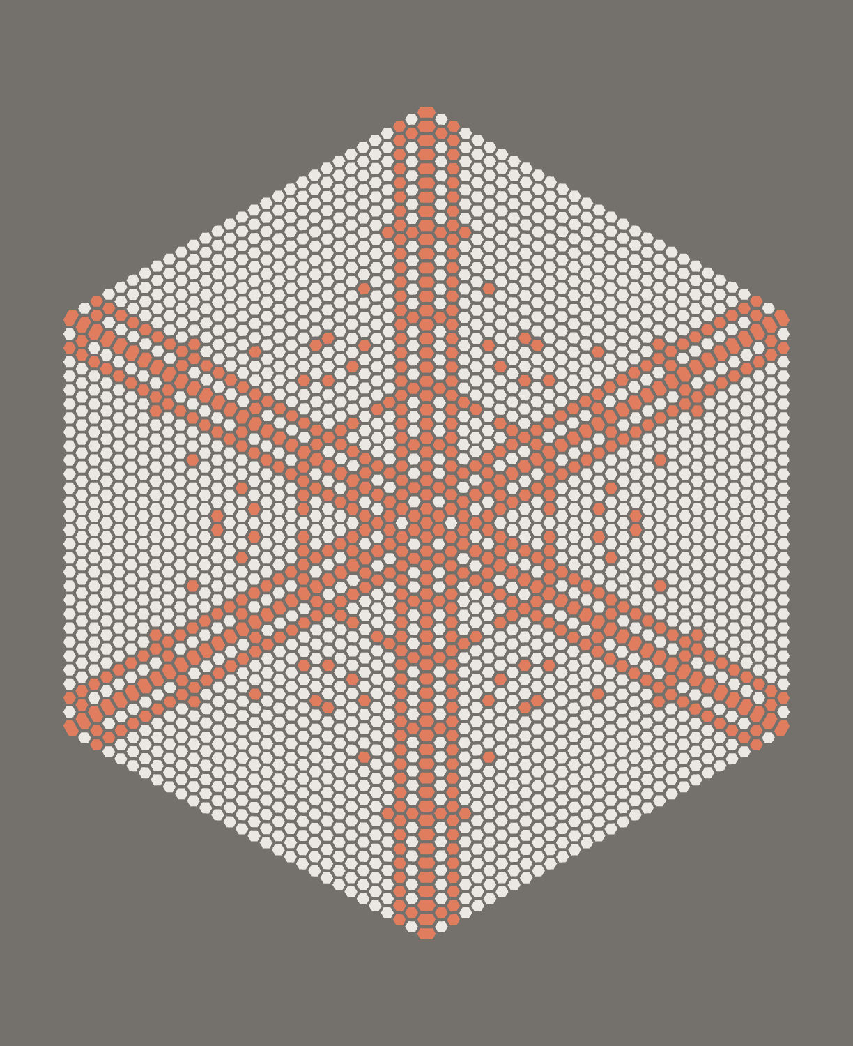 I played with different filters to overlay and then rotated copies of the triangles to make snowflakes. If you'd like to play, there is a very rough prototype here.