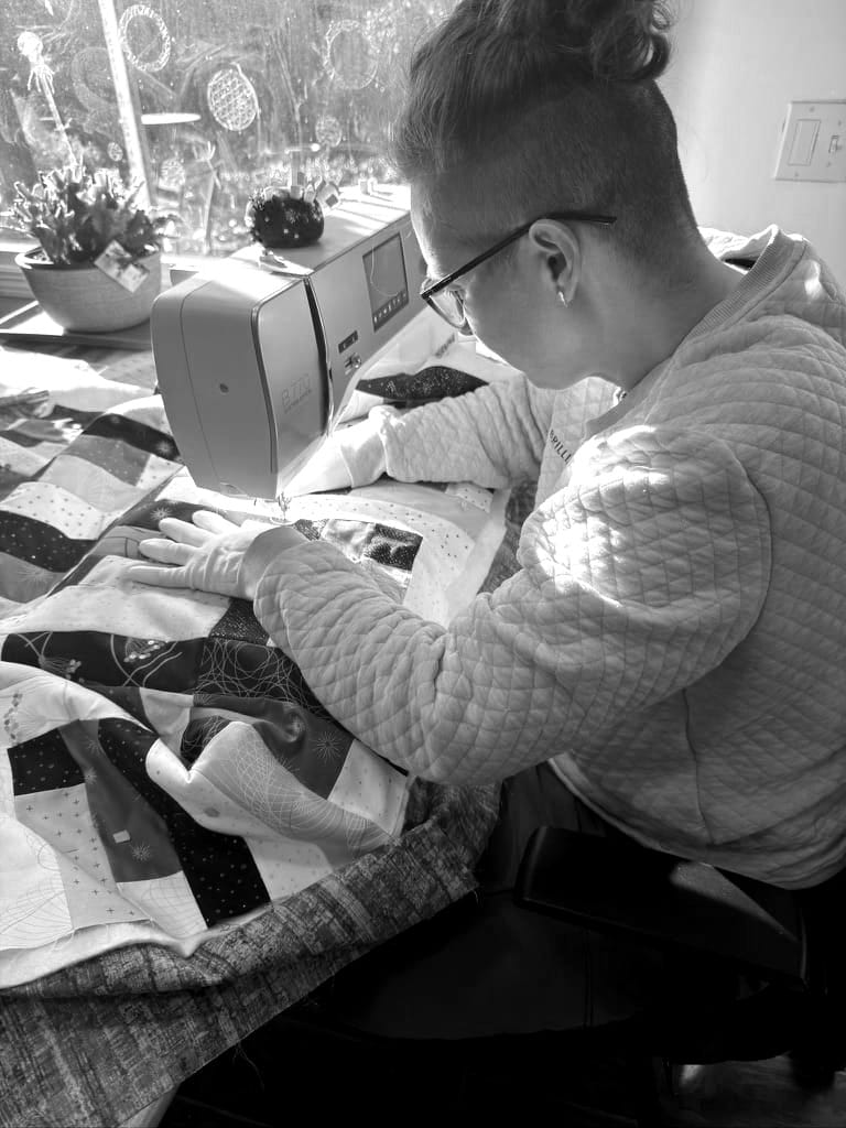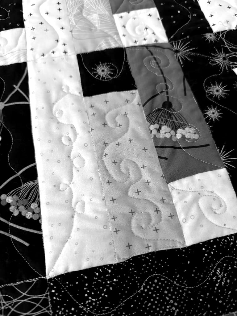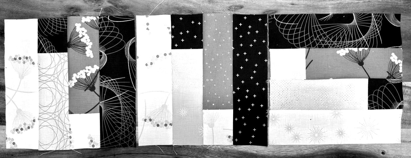 Have you ever been to a quilt store and bought fabric without a plan? You just saw the pretty colors and patterns and went for it? Well, I did - with a jelly roll of white, beige, grays, and black with mathy patterns (Note: A jelly roll is a roll of 2.5in fabric strips in a bundle.)
