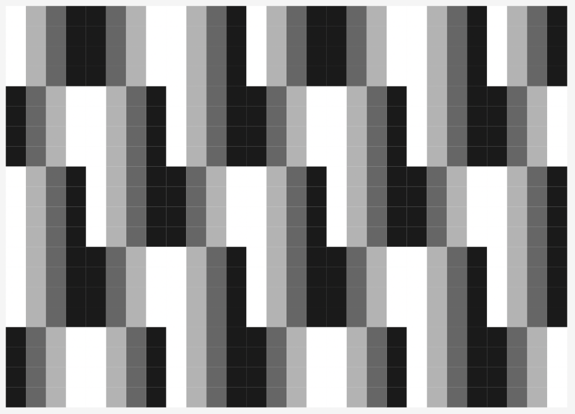 Three, four and six rows of striped fabric with grid lines with grey, black and white colors