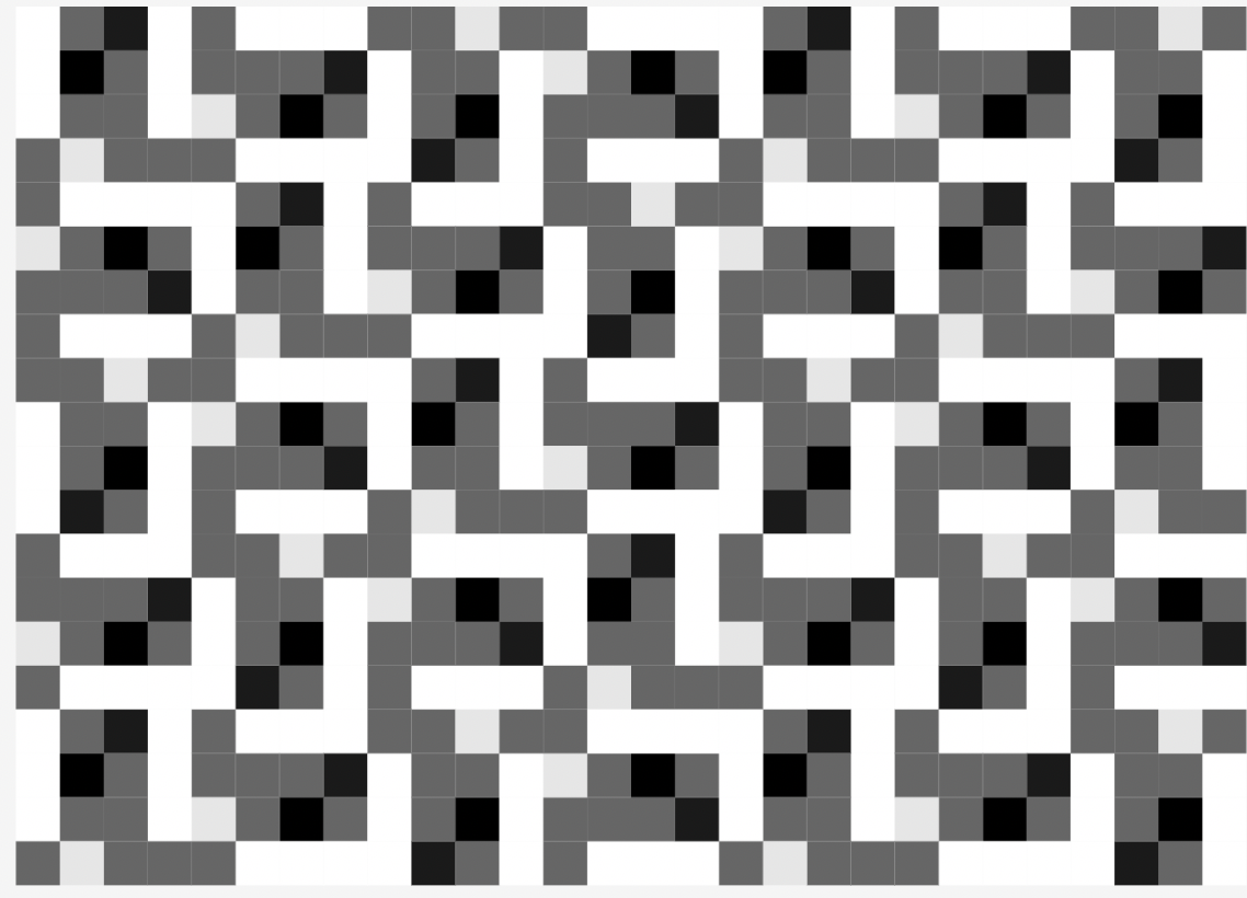 The block that makes it happen has some rotational symmetry that really makes it pop - its reflection is also used so that there are 2/3 this block and 1/3 reflected.