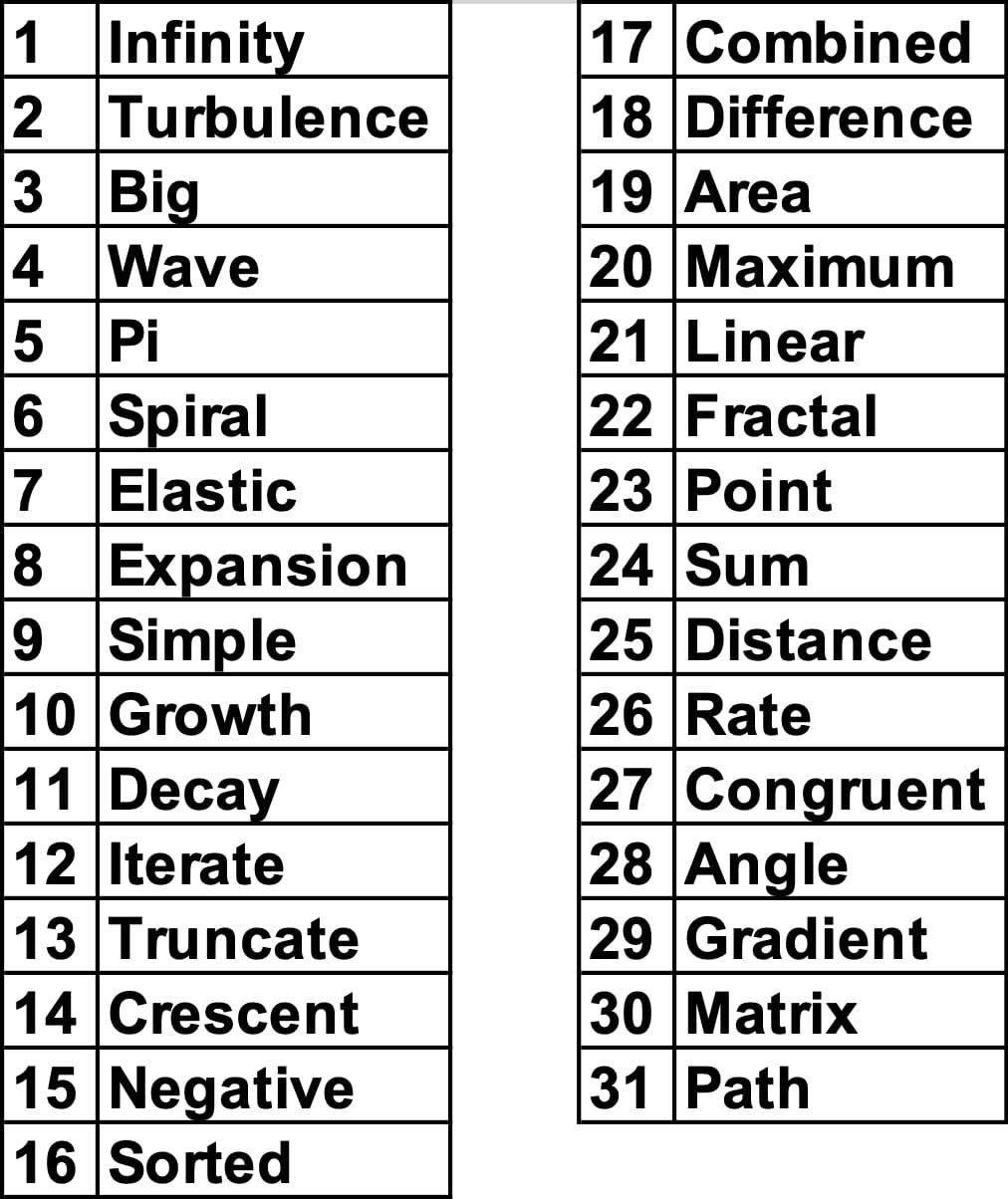 I enjoyed doing Mathober this year and plan to post a new set of prompts for next year. I always feel like I grow as a person with these short, yet focused, activities. Please join in next fall. Thanks to those that joined in on twitter. Special thanks to John Golden who did every day on his Talking Numbers blog. Foldster had some amazing fractals and gifs on twitter that were mesmerizing and innovative. Until next year…