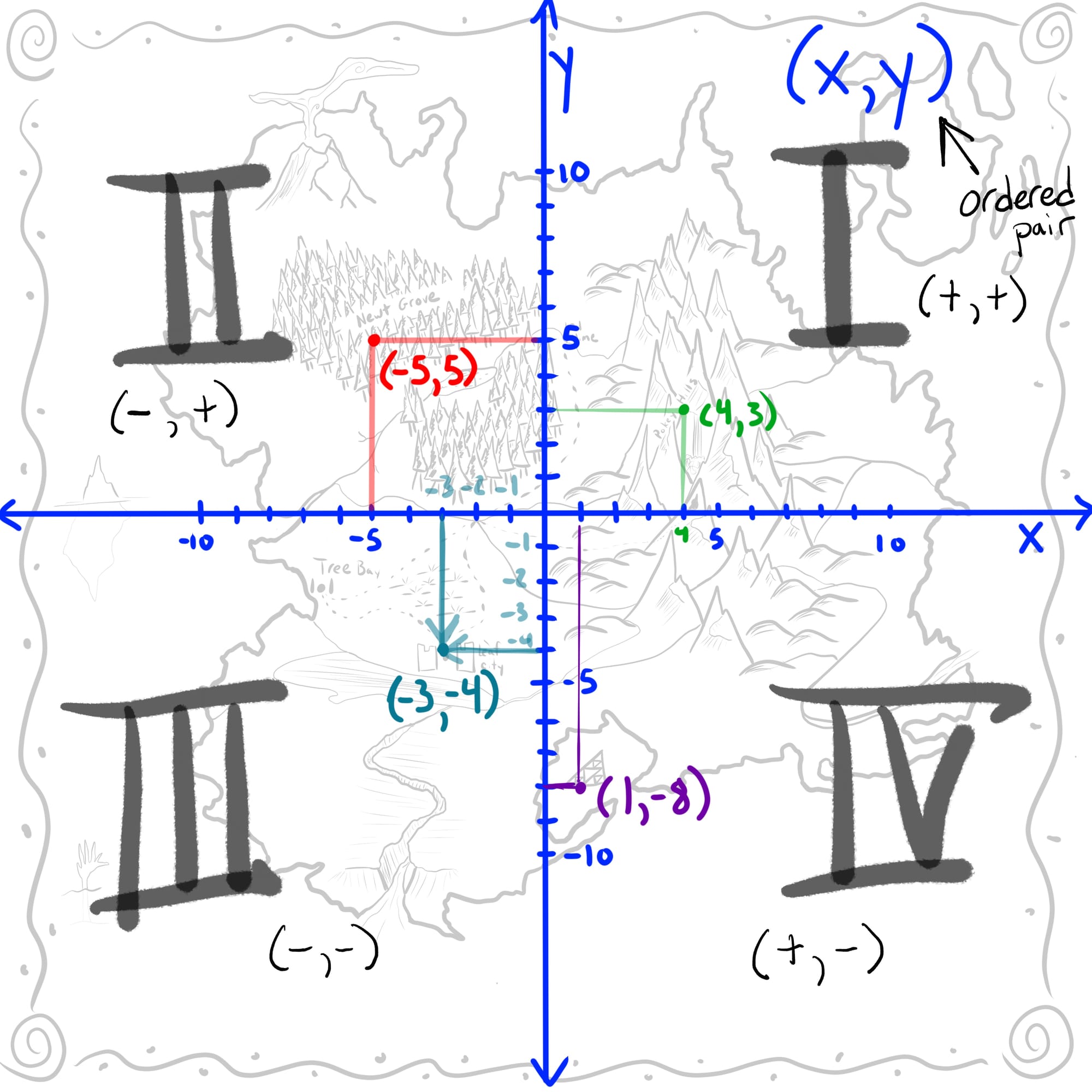 - Determine the distance on your map for two locations and find out the time required for travel. (The distance formula can be used.)