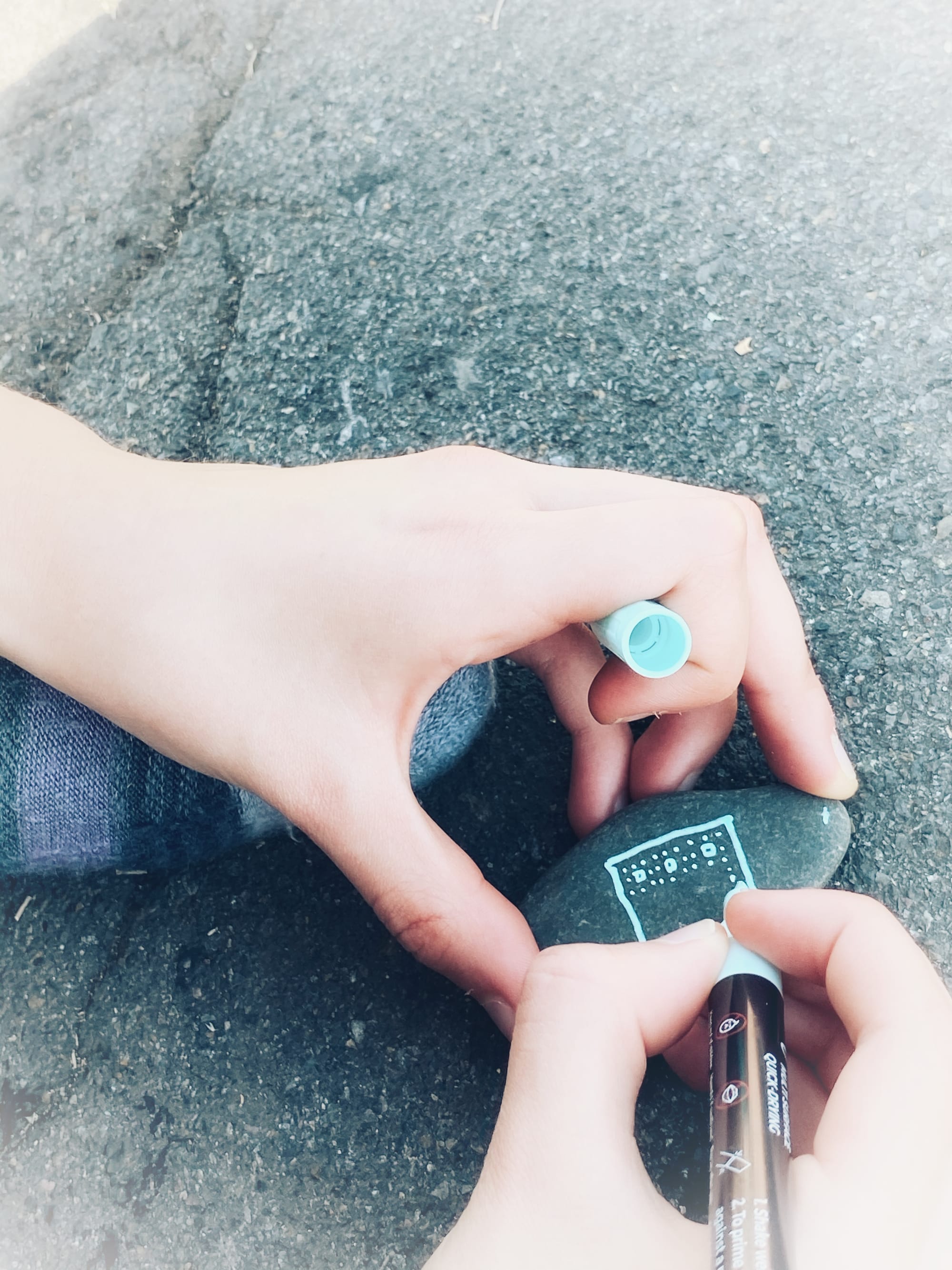 Acrylic non-toxic paint pens were used with these rocks, but we have used watercolors, markers, and ink on rocks in the past.